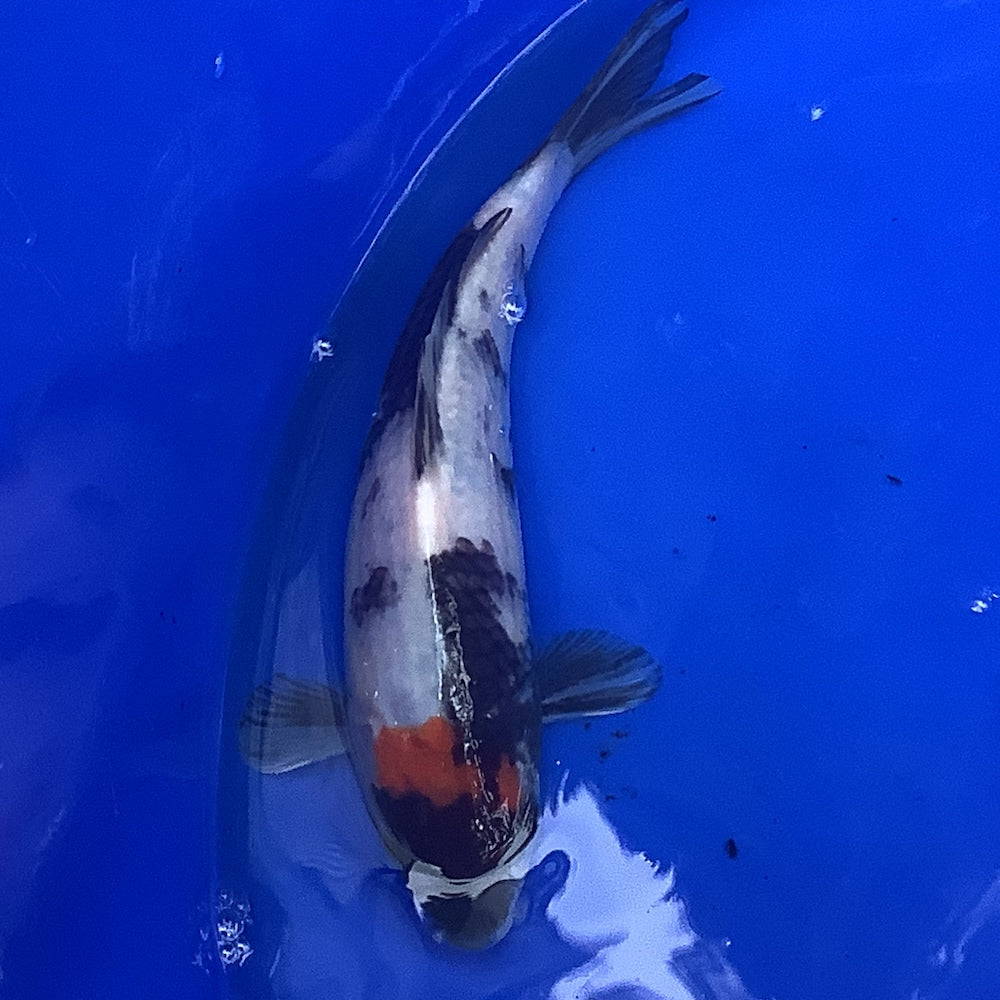The Omosako T Showa is a popular variety of koi. The Showa features a black (sumi) base with red (hi) and white (shiroji) markings arranged in bold and balanced patterns. It is a favourite among collectors, because of its dynamic contrast and graceful presence in the water.